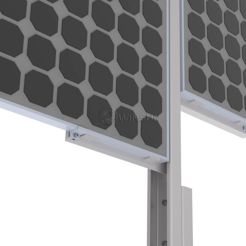 1. Ontworpen voor bifaciale of standaard PV-modules2. Ideaal voor het afschermen van boerderijen, parkeerplaatsen en infrastructuur met behulp van zonneschermen3. Schone energieoplossing met ruimtebesparende verticale indeling